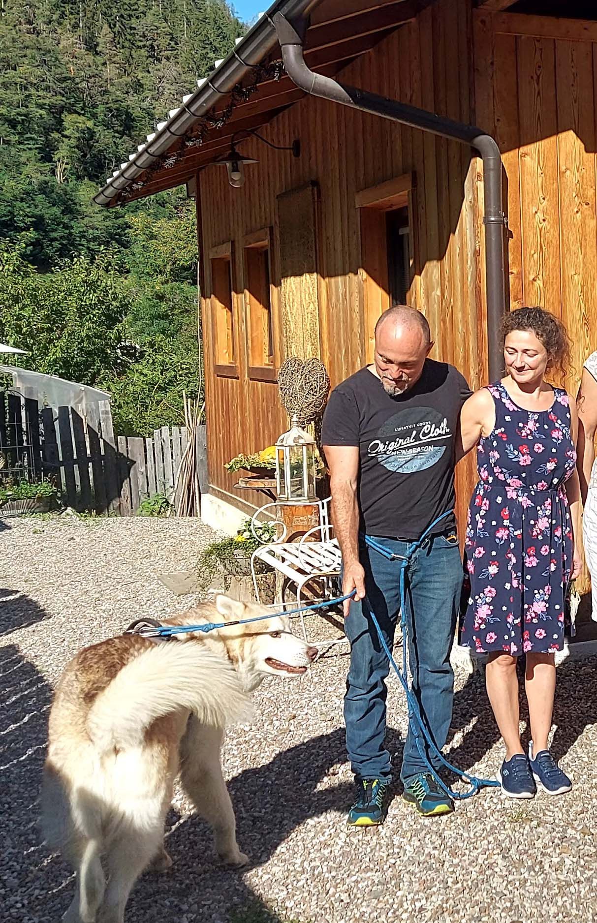 Inhaber Hubert Egger und seine Frau Irene mit Hund Nemo